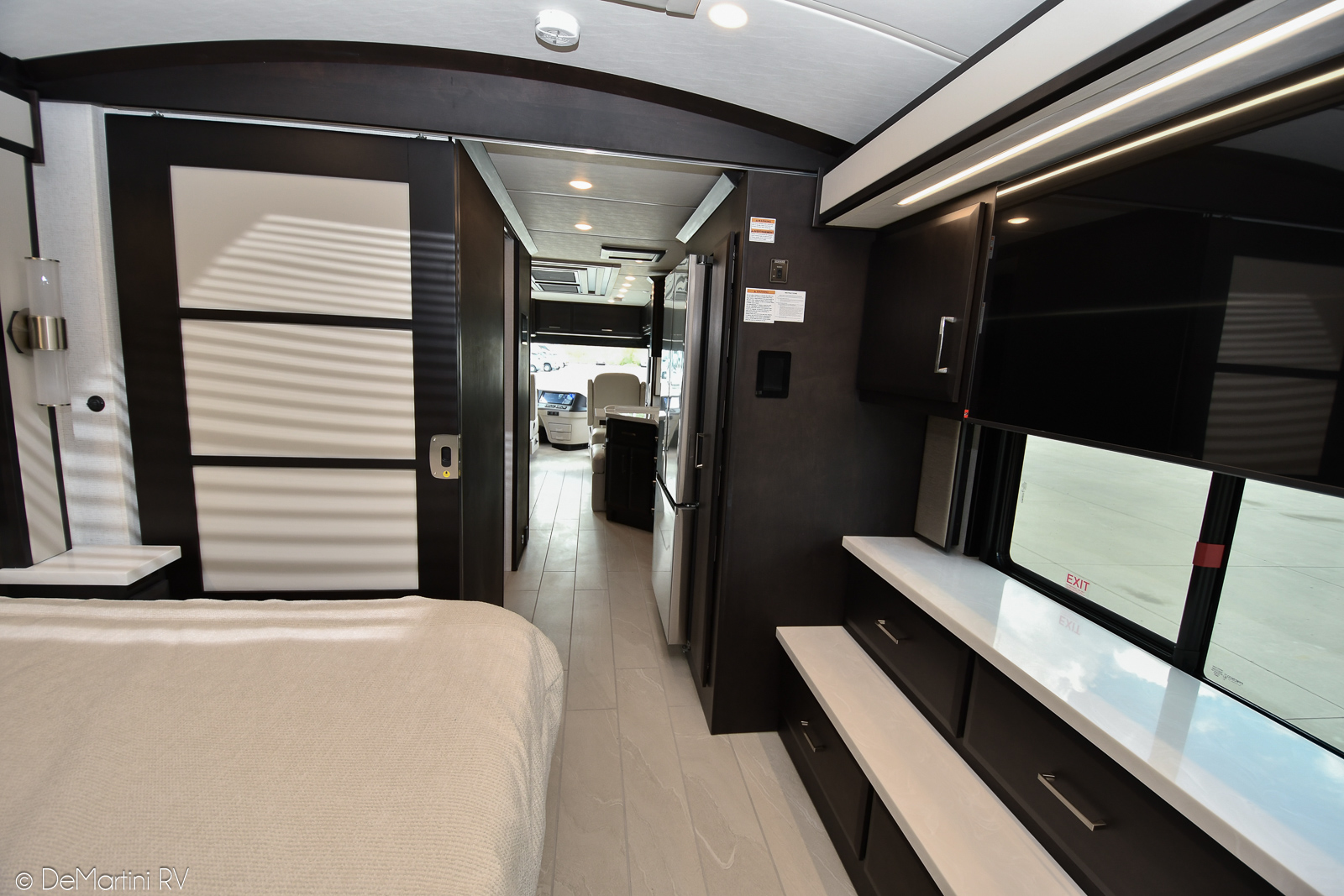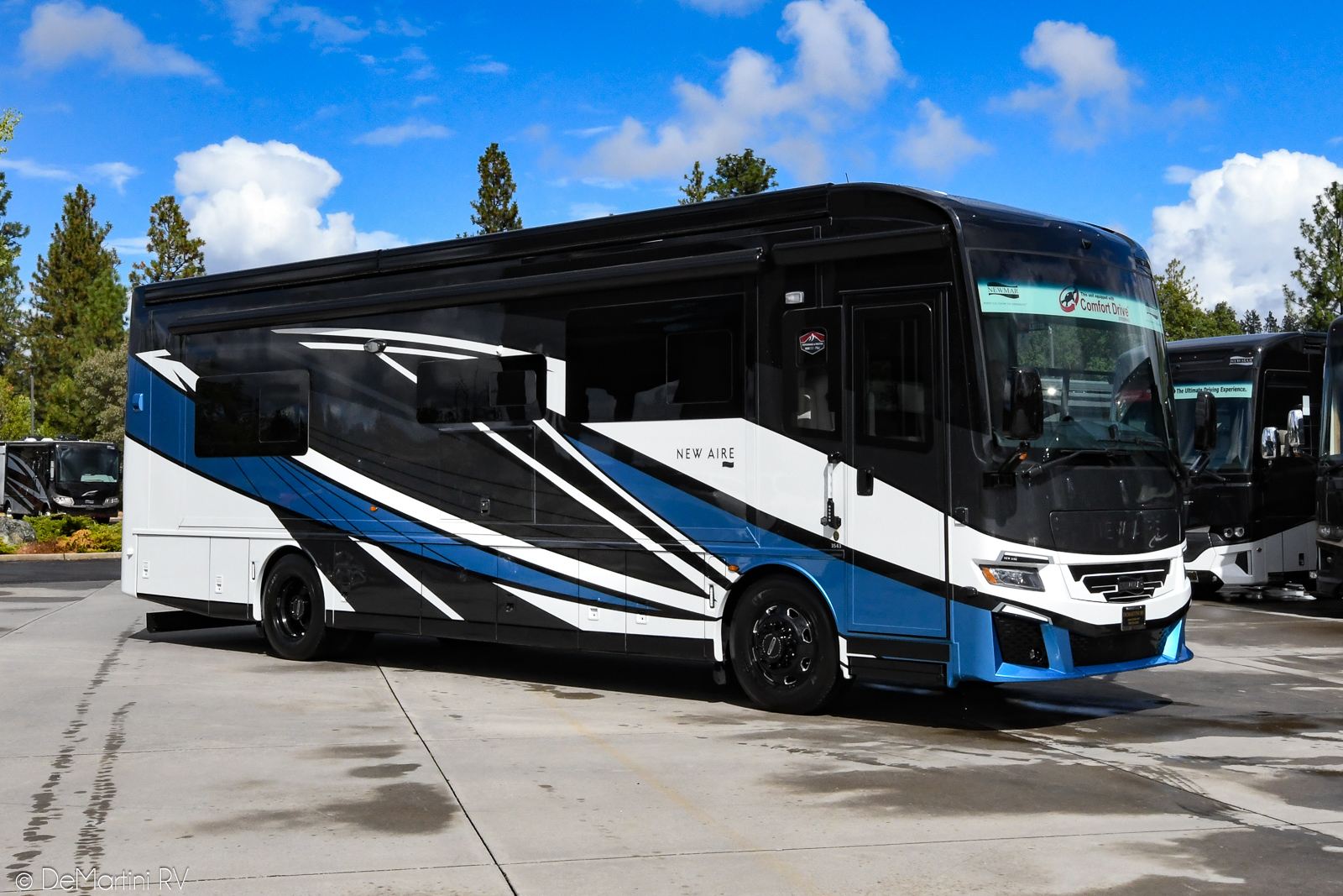 2026 Newmar New Aire 3543 Full Wall/3 Slide-Out Luxury Class A Diesel Motorhome. Black Onyx Package! The 2026 New Aire offers a perfect blend of sophisticated design and advanced technology, providing a luxurious travel experience in a more compact size. The 2026 New Aire redefines compact luxury travel with its exquisite design and state-of-the-art features. Perfect for discerning travelers who value both elegance and practicality. The New Aire is Newmar's most accessible entry into Class A luxury travel. At just 35 feet long, this compact diesel pusher offers responsive 450 horsepower performance with Comfort Drive™ adaptive steering, delivering quiet confidence on the road and full comfort at every destination—even places larger coaches simply can't access. Experience premium living with high-end finishes including standard Italian leather upholstery and heated tile floors. Travel in premium comfort with heated six-way power-adjustable driver and passenger seats. The MSRP is over $707K but OUR PRICE is slashed too low to advertise! Contact us for our LOWEST PRICE! Item #D3140 DeMartini RV Sales