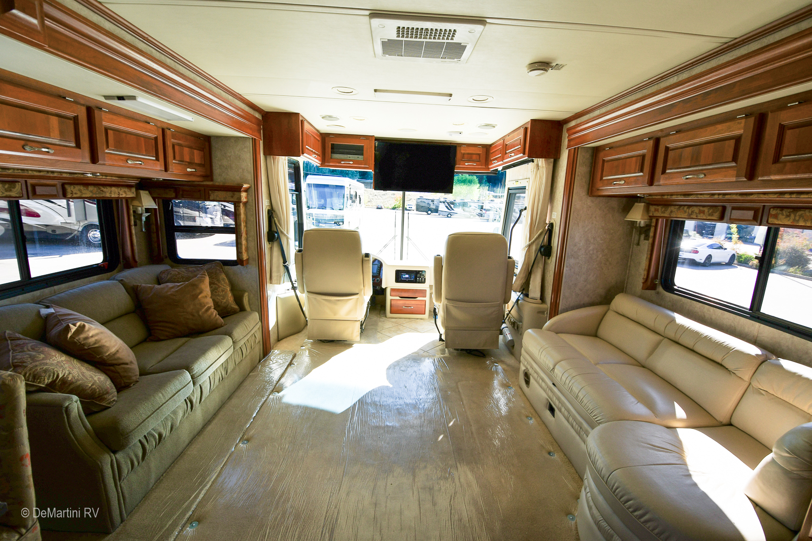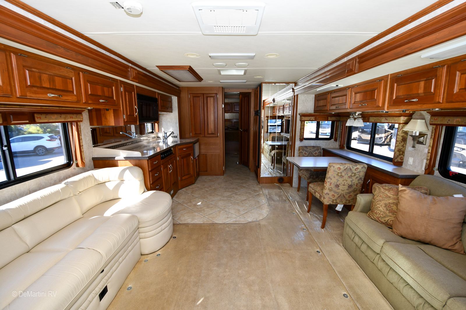 2005 Holiday Rambler Endeavor 40PRQ Quad Slide-Out Class A Diesel Motorhome. This Coach is Built on a Roadmaster Chassis and Powered by a Cummins ISL 400HP Diesel Engine with only 32,409 Miles! Equipment Includes: Power Cord Reel, Aluminum Wheels, Side-Hinged Baggage Doors, Pass Through Slide-Out Storage Tray, Pass Through Storage, Hydraulic Leveling Jacks, 2000 Watt Inverter, 3M Film Front Mask, Two Solar Panels, Exterior Entertainment Center, Full Encased Awnings, Road Side Window Awning, Front Door Awning, Auto Patio Awning, Dual Ducted Roof A/C's w/Heat Pumps, Energy Management System, Exhaust Brake, Adjustable Pedals, Rear View Camera, Power Leather Cockpit Seats, Co-Pilot Power Footrest, Power Sunvisors, and Water Purifier, Combination Washer/Dryer, DVD/VCR Player Combo, LCD TV in Bedroom, LCD TV in Cockpit, 4-Door Refrigerator w/Icemaker, Convection Microwave, Solid Surface Countertops. Equipped with a Onan 8.0KW diesel Generator with only 134 hours. The Floorplan Features: Quad Slide-Out, Leather J-Lounge, Fabric Hide-a-bed Sofa, Tile Floor in Kitchen/Bath, Dinette Table and Chairs, Private Toilet and Second Sink, Open Bath, Queen Bed. Asking only $64,900! Item #D3095 DeMartini RV Sales