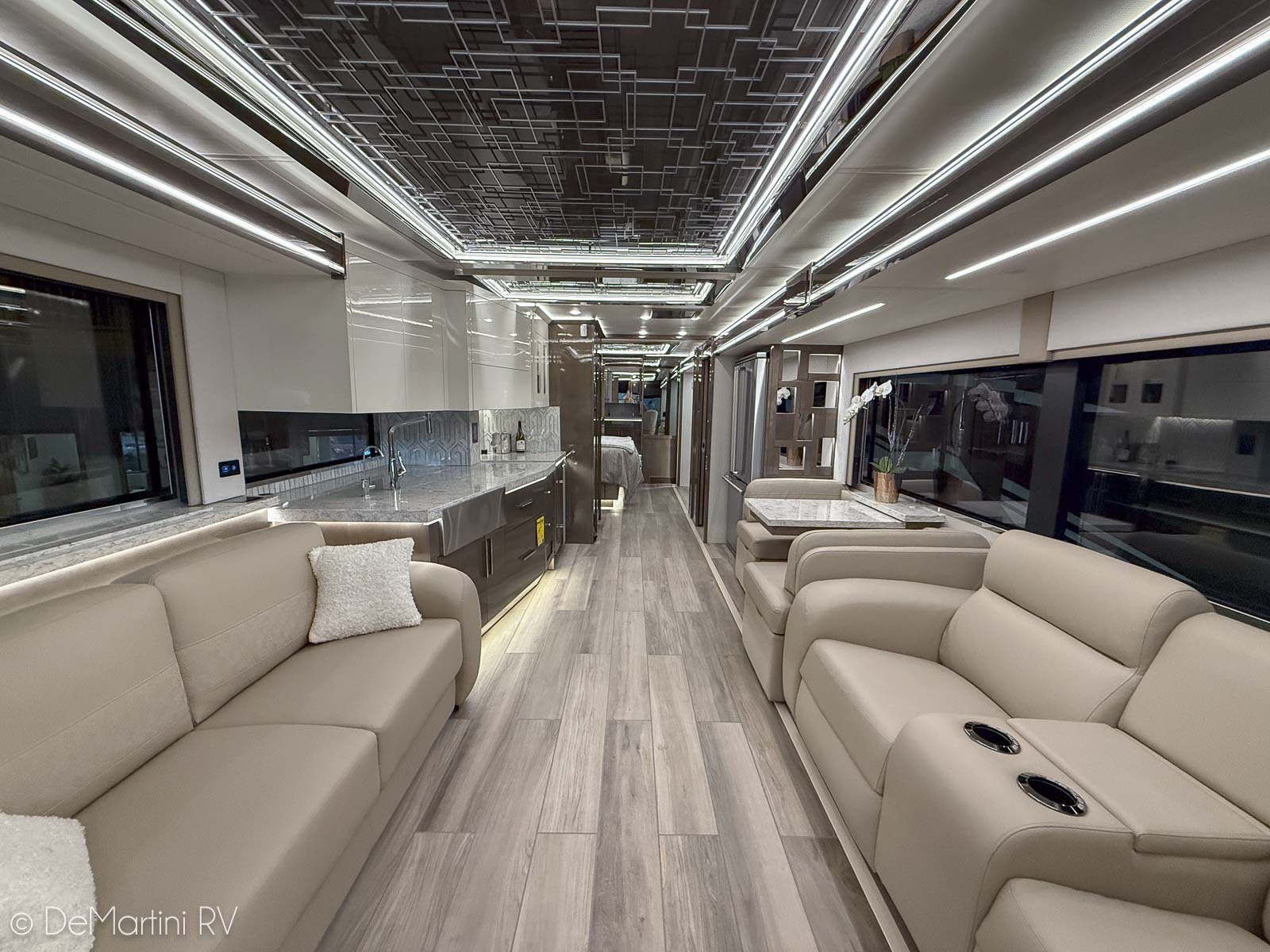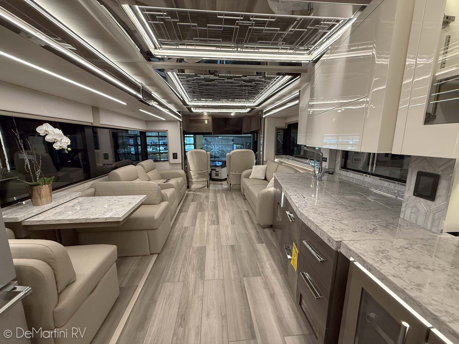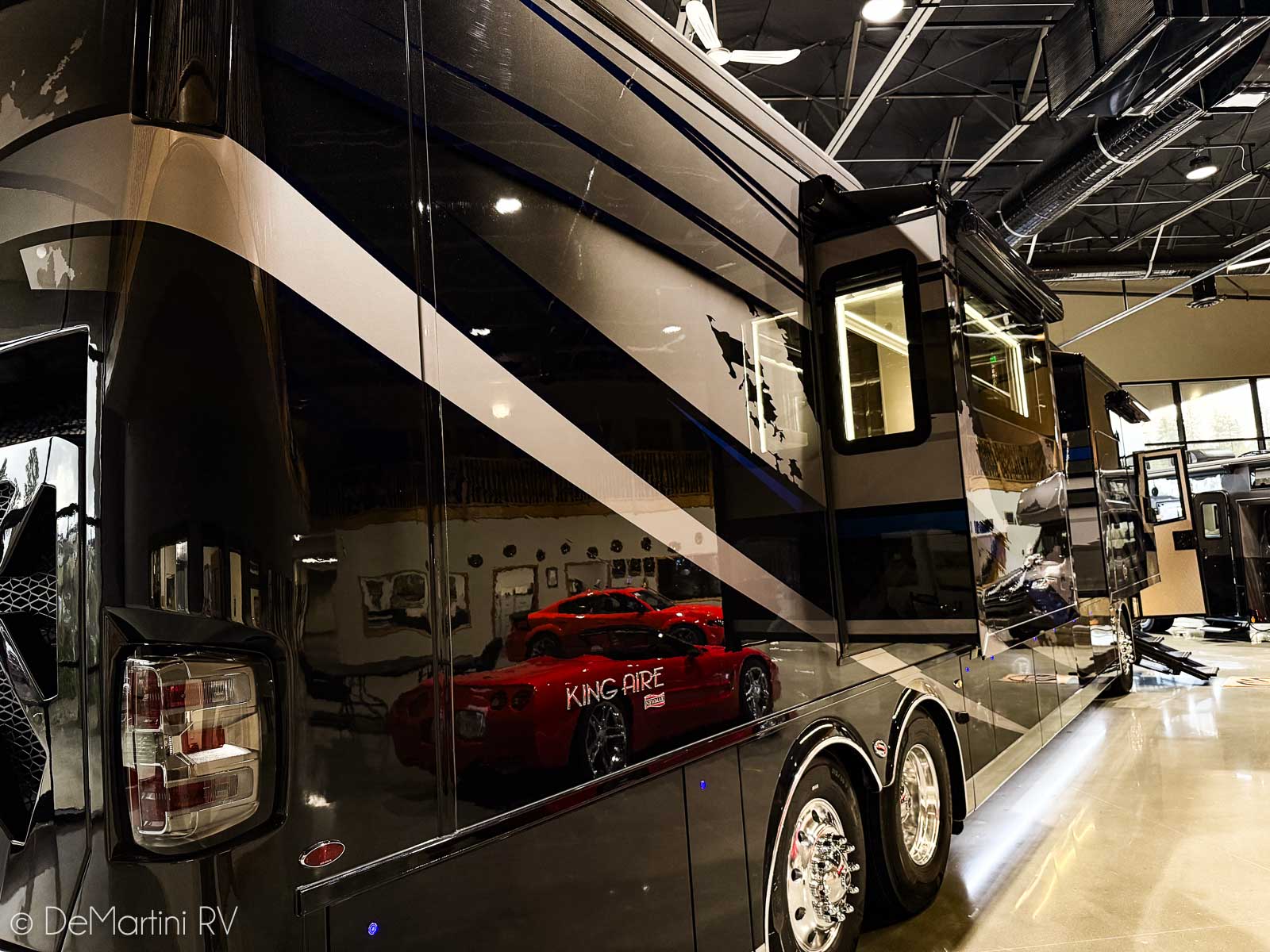 2025 Newmar King Aire 4596 Full Wall/3 Slide-Out Luxury Class A Diesel Pusher Motorhome. This King Aire is One of a Kind! SPECIAL EDITION PAINT! Featuring the gorgeous Premium Paint option in Midnight Pearl. Features include: · MIDNIGHT PEARL PREMIUM GRAPHICS · WINDSHIELD PROTECTION · SEDONA/SUMMIT MAPLE HARDWOOD CABINETRY · SPARTAN K3 CHASSIS · CUMMINS 6O5HP DIESEL ENGINE · SUB ZERO BEVERAGE CENTER · FIREPLACE IN BEDROOM · SECURITY SYSTEM · EURO BOOTH,2LEAVES,2 FLD CHRS · OVERHEAD CABINET - HEAD OF BED · Passenger Seat with Massage · THEATER SEATING · 4 SUNFREE SOLAR PANELS · KITCHEN WINDOW and more! Contact us for our LOWEST Price! Item #D3201 DeMartini RV Sales