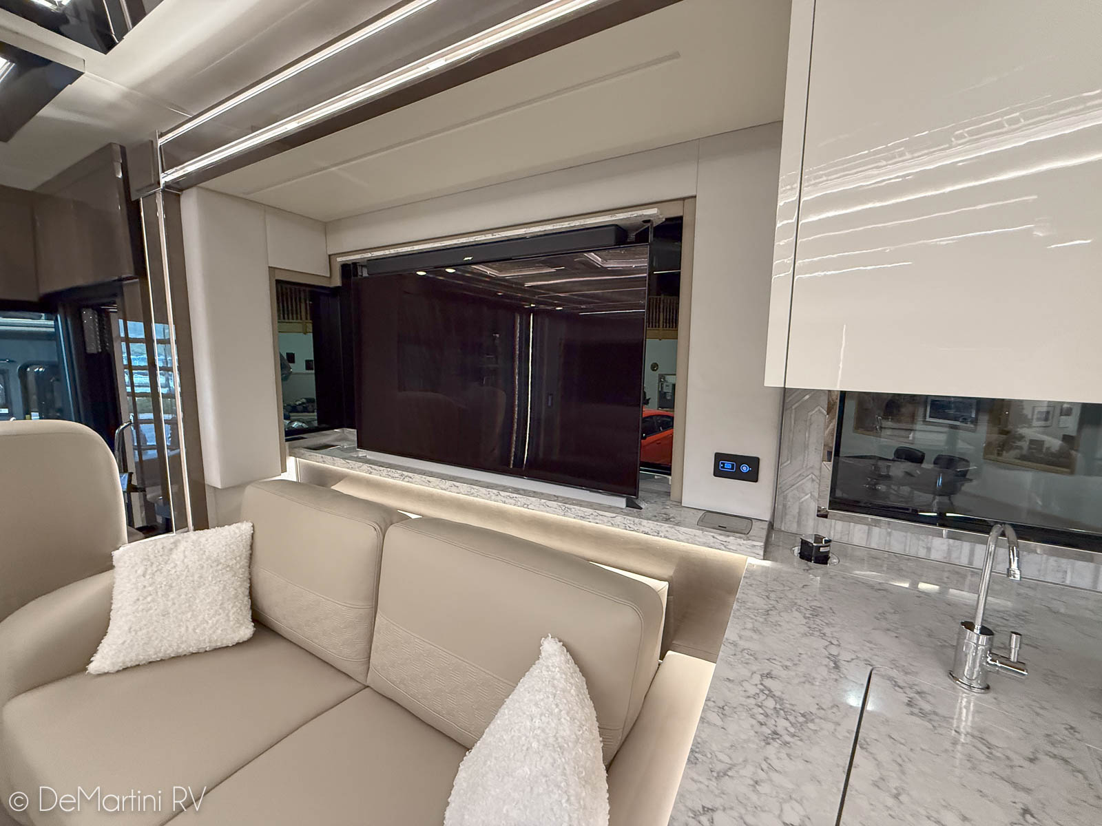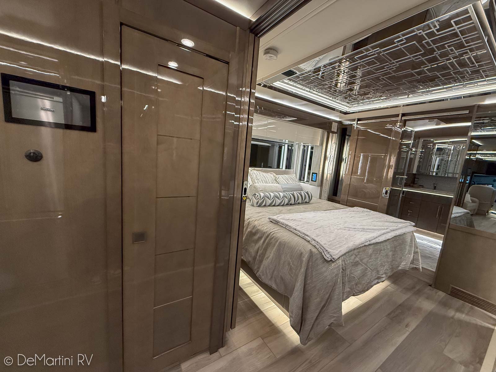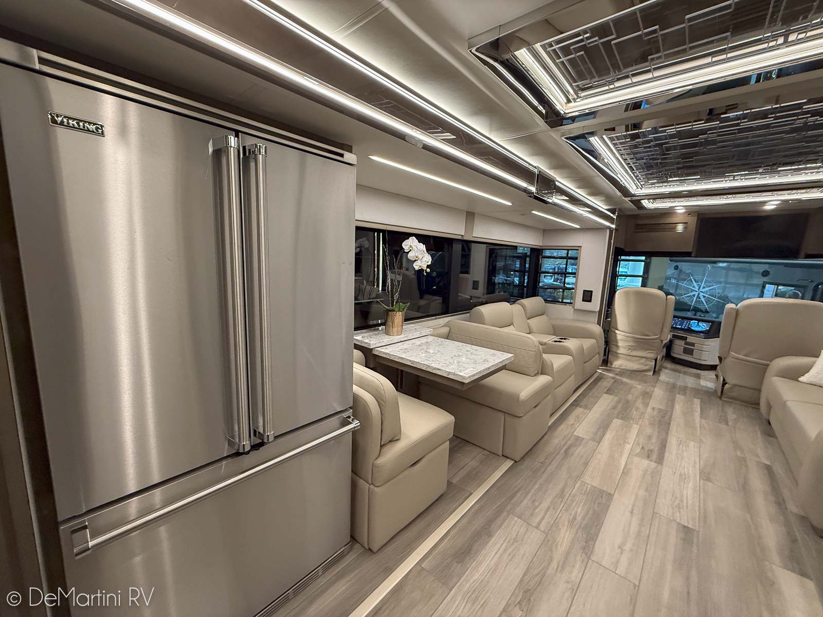 2025 Newmar King Aire 4596 Full Wall/3 Slide-Out Luxury Class A Diesel Pusher Motorhome. This King Aire is One of a Kind! SPECIAL EDITION PAINT! Featuring the gorgeous Premium Paint option in Midnight Pearl. Features include: · MIDNIGHT PEARL PREMIUM GRAPHICS · WINDSHIELD PROTECTION · SEDONA/SUMMIT MAPLE HARDWOOD CABINETRY · SPARTAN K3 CHASSIS · CUMMINS 6O5HP DIESEL ENGINE · SUB ZERO BEVERAGE CENTER · FIREPLACE IN BEDROOM · SECURITY SYSTEM · EURO BOOTH,2LEAVES,2 FLD CHRS · OVERHEAD CABINET - HEAD OF BED · Passenger Seat with Massage · THEATER SEATING · 4 SUNFREE SOLAR PANELS · KITCHEN WINDOW and more! Contact us for our LOWEST Price! Item #D3201 DeMartini RV Sales