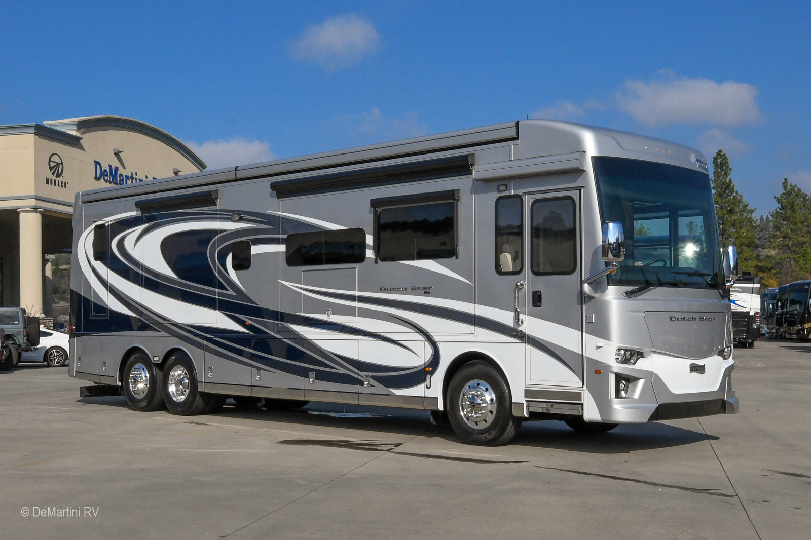 2022 Newmar Dutch Star 4081 Full Wall/3 Class A Diesel Motorhome. This Coach is Built on a Freightliner Chassis and Powered by a Cummins L9 450HP Diesel Engine with 27,971 Miles! Equipment Includes: Power Water Hose Reel, Power Cord Reel, Hydro-Hot Water System, Aluminum Wheels, Side-Hinged Baggage Doors, Slide-Out Storage Tray, Pass Through Slide-Out Storage Tray, Keyless Entry, Hydraulic Leveling Jacks, 3M Film Front Mask, Exterior Entertainment Center w/TV, Full Encased Awnings, Dual Power Patio Awnings, Auto Front Door Awning, Power Window Awnings, Dual Ducted Roof A/C's w/Heat Pumps, Auto Generator Start, Tag Axle, 3000 Watt Inverter, Exterior Freezer on Slide Tray, Adjustable Pedals, 3-Camera Rear Vision System, Power Leather Cockpit Seats, Co-Pilot Power Footrest, GPS Navigation System, Trip Computer, Tire Pressure Monitoring System, Power Sunvisors, Engine Brake, and Central Vacuum System, Water Purifier, Stacked Washer/Dryer, Power Blinds in Cockpit/Living Area and Bedroom, Blu-Ray Player, LCD TV in Bedroom, LCD TV in Cockpit, Residential Refrigerator, Convection Microwave, Solid Surface Countertops, Multiplex Wiring System, Power TV Lift in Living Area, Induction Cooktop, Heated Tile Floor. Equipped with a Onan 8.0KW Diesel Generator with only 72 Hours. The Floorplan Features: Full Wall/3, Leather Sleeper Sofa, Leather Theater Seats, Full Tile Floor, Booth Dinette, Bath and a Half Floorplan, King Bed. Asking only $369,900! Item #D3219 DeMartini RV Sales