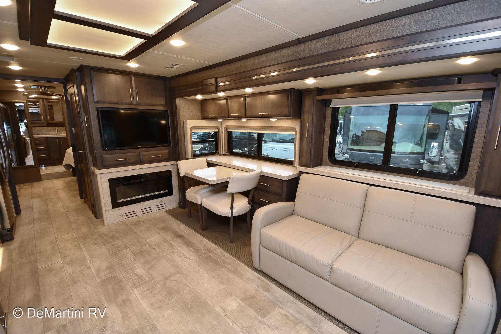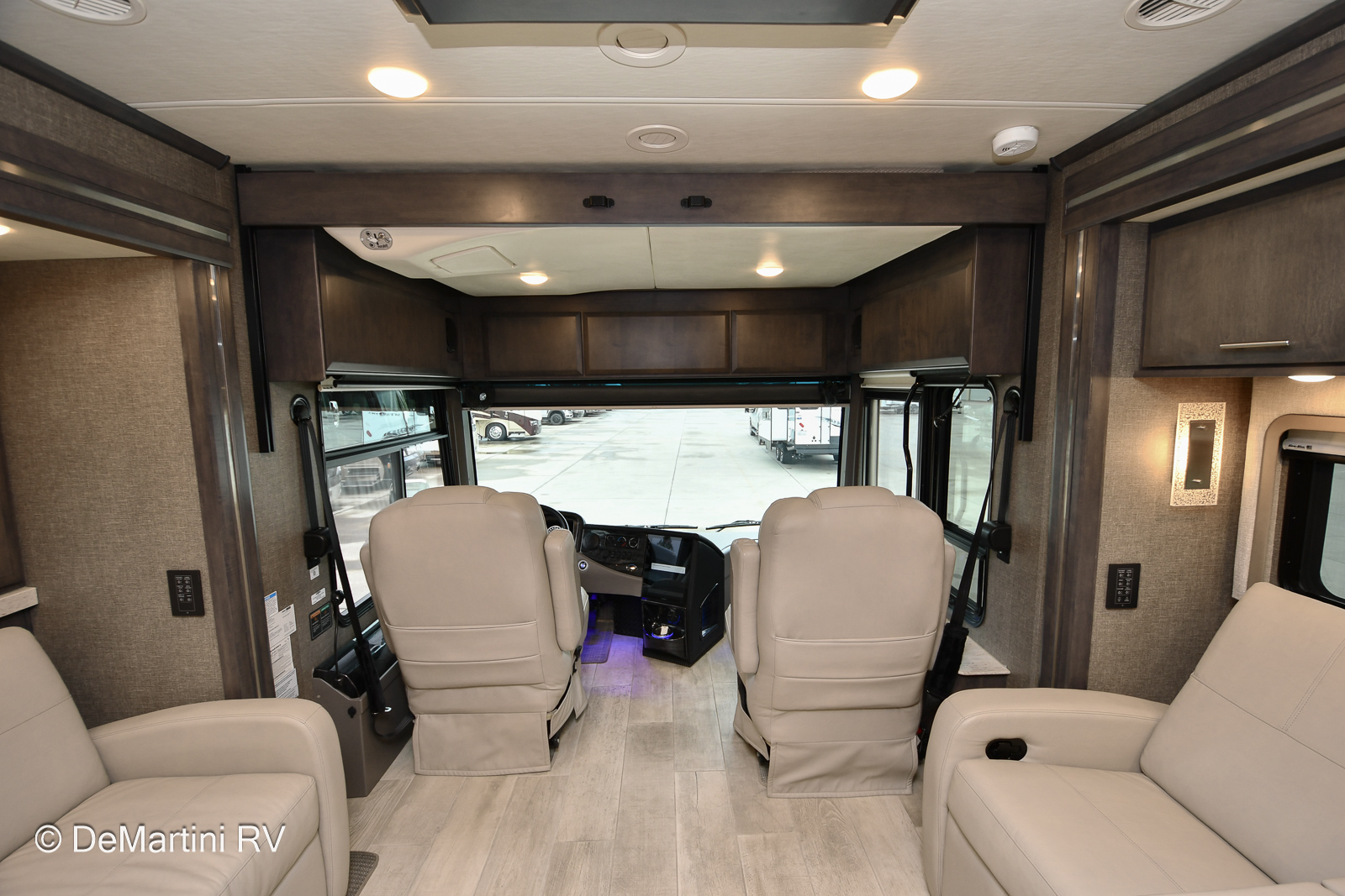 2021 Thor Venetian R40 Full Wall/3 Class A - Diesel Pusher. This Coach is Built on a Freightliner Chassis and Powered by a Cummins L9 380HP Turbo Diesel Engine with only 17,308 Miles! Equipment Includes: Power Water Hose Reel, Power Cord Reel, Aqua Hot Water System, Aluminum Wheels, Side-Hinged Baggage Doors, Pass Through Slide-Out Storage Tray, Pass Through Storage, Hydraulic Leveling Jacks, 2000 Watt Inverter, 3M Film Front Mask, Solar Panel, Exterior Entertainment Center w/TV, Full Encased Awnings, Auto Front Door Awning, Auto Patio Awning, Three Ducted Roof A/C's w/Heat Pumps, 3-Camera Rear Vision System, Power Leather Cockpit Seats, Co-Pilot Power Footrest, GPS Navigation System, Trip Computer, Power Sunvisors, Engine Brake, Dropdown Overhead Bunk, and Central Vacuum System, Water Purifier, Stacked Washer/Dryer, Blu-Ray Players, LCD TV in Bedroom, LCD TV in Living Area, Residential Refrigerator, Fireplace, Convection Microwave, Ceiling Fan in Bedroom, Solid Surface Countertops, Multiplex Wiring System, Power TV Lift in Living Area, Induction Cooktop. Equipped with a Onan 10.0KW Diesel Generator with only 70 Hours. The Floorplan Features: Full Wall/3, Leather Sleeper Sofa, Leather Theater Seats, Full Tile Floor, Dinette Table and Chairs, Bath and a Half Floorplan, King Bed. Asking only $224,900! Item #D3226 DeMartini RV Sales