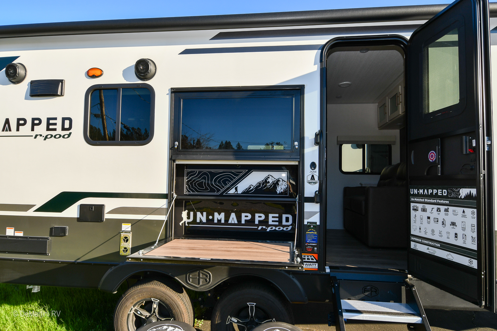 2026 Forest River R-Pod Unmapped 24RK Slide-Out Travel Trailer. The Un•Mapped 24RK features a rear kitchen layout with a 12V black glass refrigerator, and an air fryer microwave. The Bar2Table pull-out dinette and TrailGate outdoor bar enhance dining flexibility and outdoor entertaining. Inside, enjoy a king bed, 15K A/C, and a tankless on-demand water heater. Exterior amenities include a 21' powered awning and a hot & cold spray port.The MSRP is over $57K but we're slashing it down too low to advertise! Item #D3244 DeMartini RV Sales