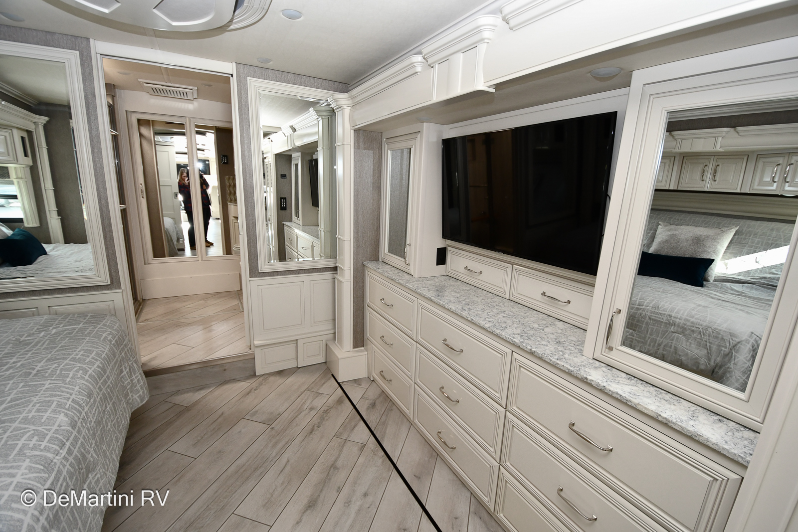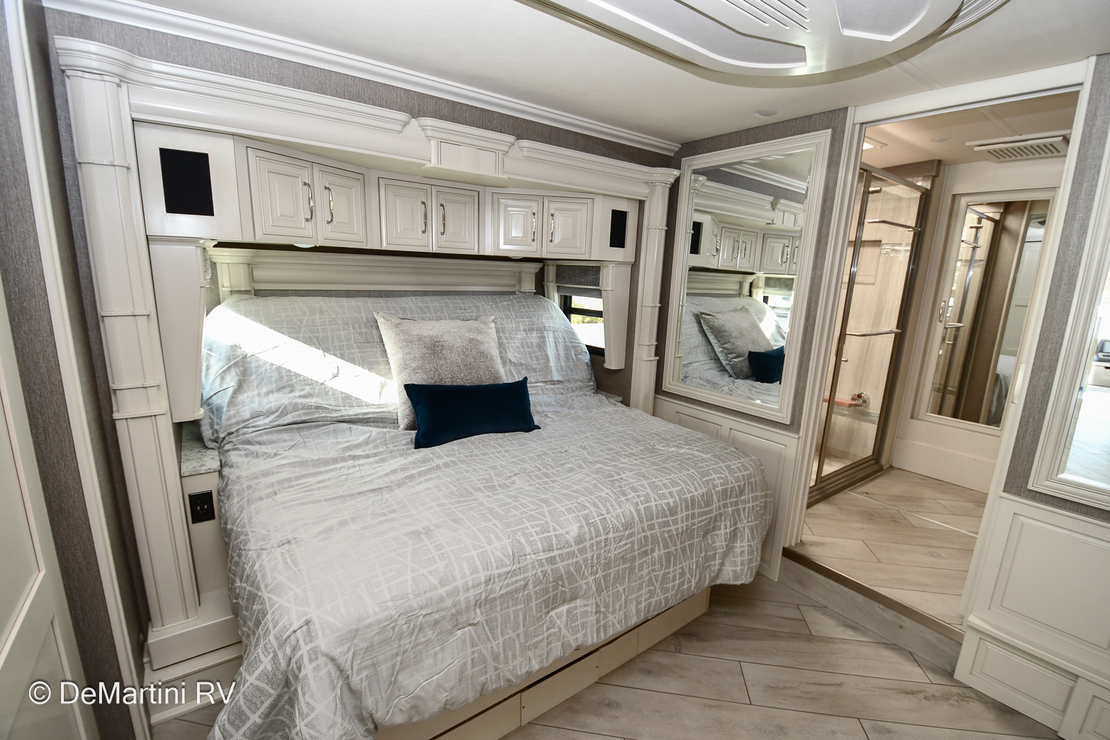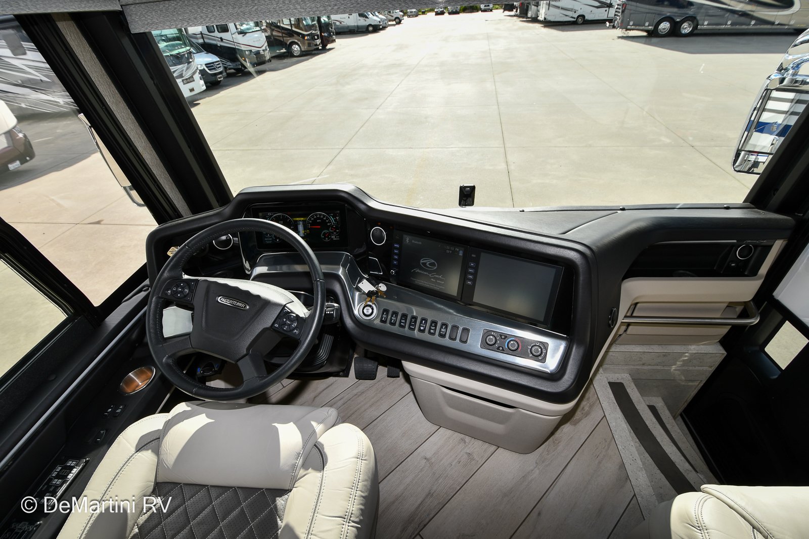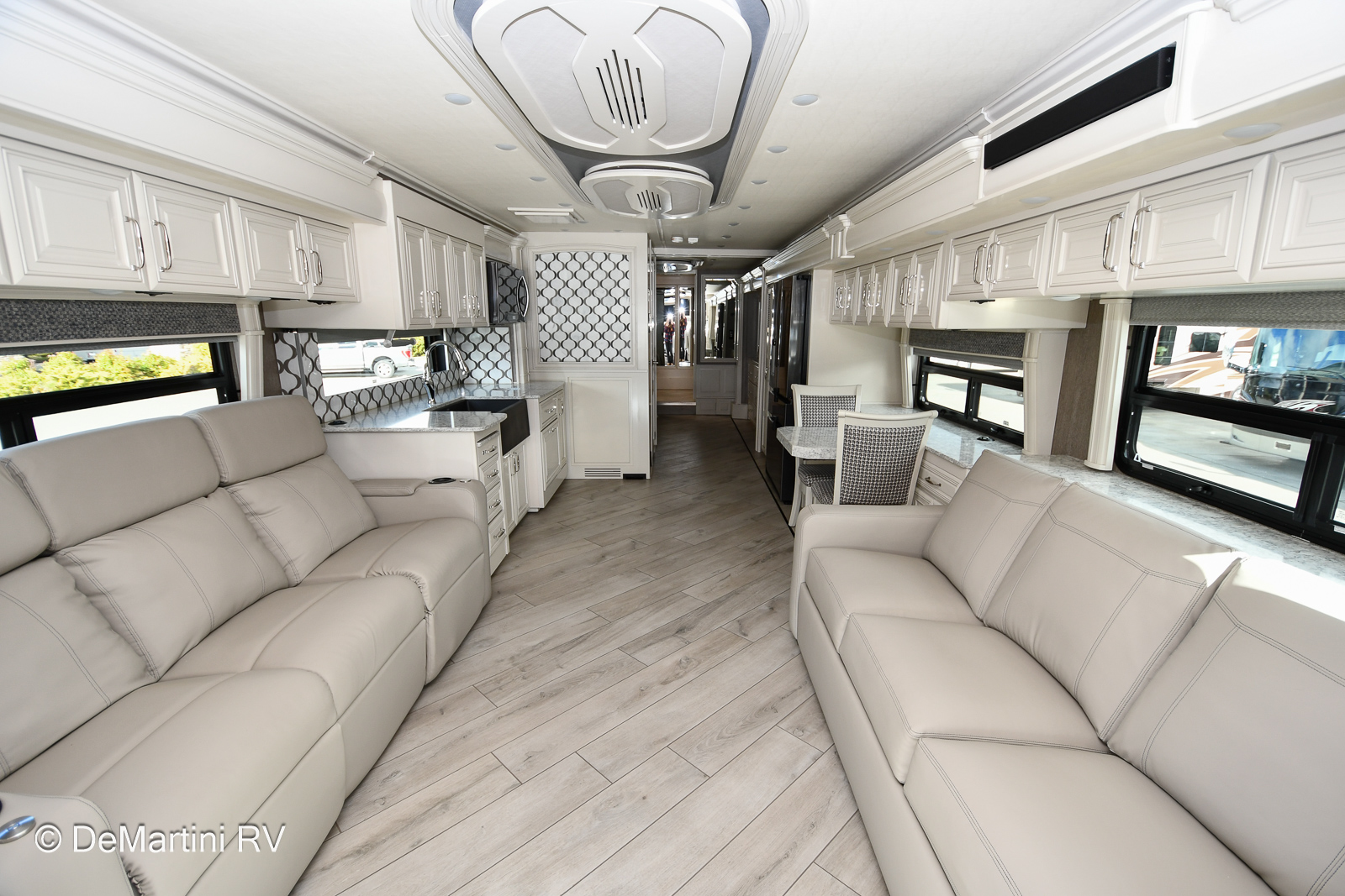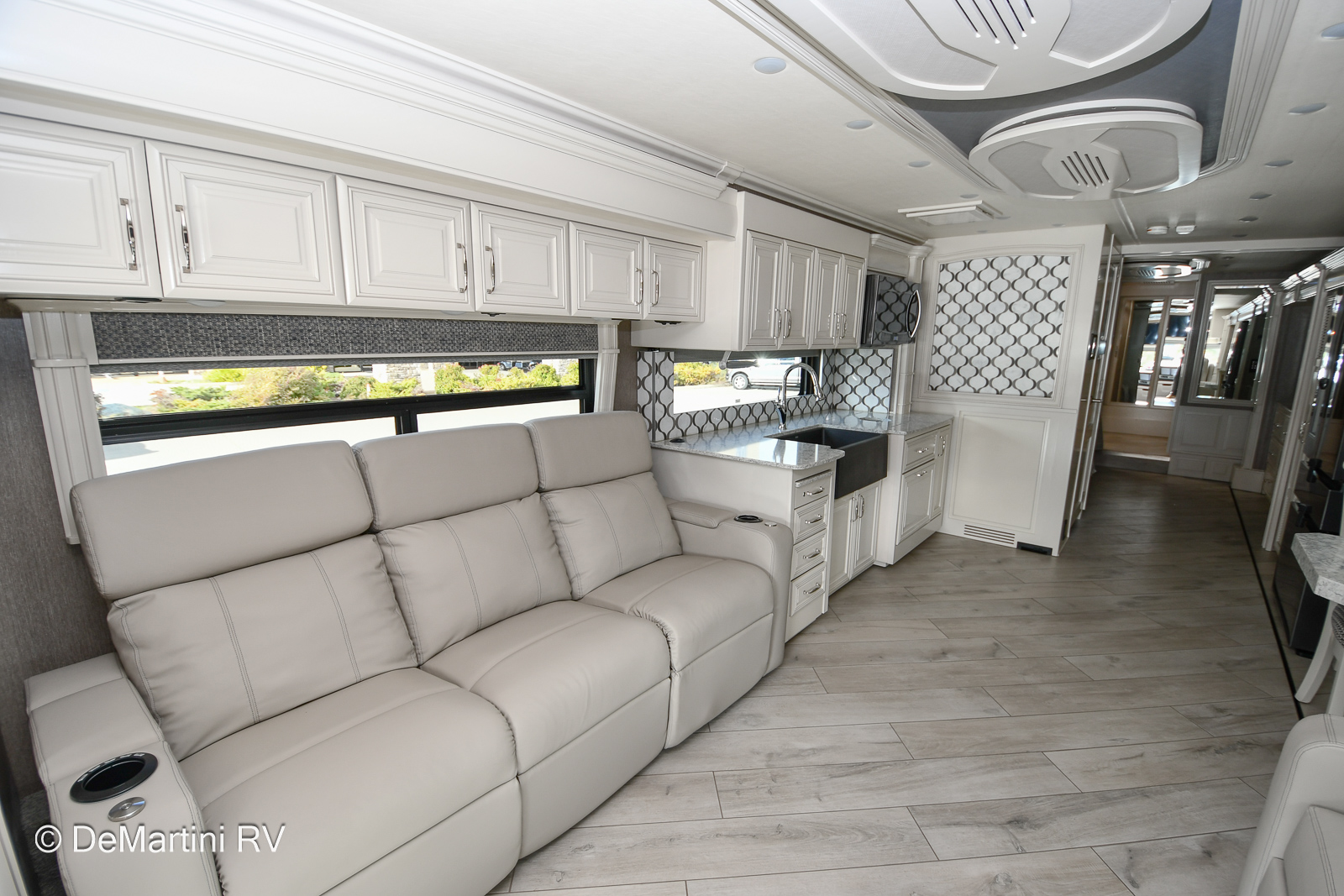 2021 American Coach American Dream 45A Full Wall/3 Class A - Diesel Pusher. This Coach is Built on a Freightliner Chassis and Powered by a Cummins X15 605HP Diesel Engine with only 25,003 Miles! Equipment Includes: Power Water Hose Reel, Power Cord Reel, Aqua Hot Water System, Aluminum Wheels, Side-Hinged Baggage Doors, Slide-Out Storage Trays, Pass Through Slide-Out Storage Tray, Keyless Entry, Air/Hydraulic Leveling, 2.8KW Pure Sine Wave Inverter, 3M Film Front Mask, Solar Panel, Wi-Fi Extender, MaxxAir Vents, Exterior Entertainment Center w/TV, Full Encased Awnings, Window Awning(s), Auto Front Door Awning, Two Power Patio Awnings, Three Ducted Roof A/C's w/Heat Pumps, Tag Axle, Sani-Con System, Exterior Freezer, Adjustable Pedals, 3-Camera Rear Vision System, Mobileye System, Power Leather Cockpit Seats, Co-Pilot Power Footrest, GPS Navigation System, Trip Computer, Tire Pressure Monitoring System, Power Sunvisors, Brake Controller, Engine Brake, and Central Vacuum System, Water Purifier, Stacked Washer/Dryer, Power Blinds Through Out, Blu-Ray Player, LCD TV in Bedroom, LCD TV in Cockpit, Residential Refrigerator, Dishwasher, Convection Microwave, Solid Surface Countertops, Multiplex Wiring System, Power TV Lift in Living Area, Induction Cooktop. Equipped with a Onan 12.5KW Diesel Generator with only 146 Hours. The Floorplan Features: Full Wall/3, Leather Hide-a-bed Sofa, Leather Theater Seats, Heated Floors, Full Tile Floor, Dinette Table and Chairs, Bath and a Half Floorplan, King Bed, Rear Wardrobe. Asking only $359,900! Item #D3249 DeMartini RV Sales