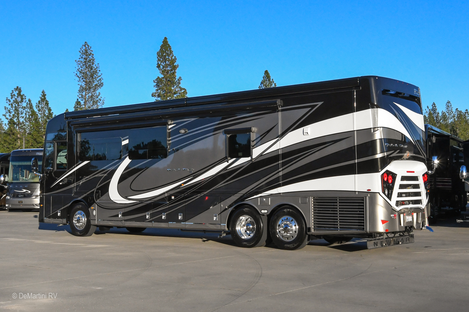2021 Newmar Dutch Star 4081 Full Wall/3 Class A Diesel Motorhome. This Coach is Built on a Freightliner Chassis and Powered by a Cummins L9 450HP Diesel Engine with 26,672 Miles! Equipment Includes: Power Water Hose Reel, Power Cord Reel, Hydro-Hot Water System, Aluminum Wheels, Side-Hinged Baggage Doors, Slide-Out Storage Tray, Pass Through Slide-Out Storage Tray, Keyless Entry, Hydraulic Leveling Jacks, 3M Film Front Mask, Exterior Entertainment Center w/TV, Full Encased Awnings, Power Window Awning(s), Auto Front Door Awning, Dual Ducted Roof A/C's, Tag Axle, 3000 Watt Inverter, Sani-Con System, Two Power Patio Awnings, Exterior Freezer on Slide Tray, Adjustable Pedals, Power Leather Cockpit Seats, Co-Pilot Power Footrest, Heated Cockpit Seats, GPS Navigation System, Trip Computer, Power Sunvisors, Engine Brake, View 360 Camera System, and Central Vacuum System, Water Purifier, Stacked Washer/Dryer, Power Blinds in Cockpit and Living/Bedroom and Bathrooms, Safe, Blu-Ray Player, LCD TV in Bedroom, LCD TV in Cockpit, Residential Refrigerator, Dishwasher, Convection Microwave, Solid Surface Countertops, Multiplex Wiring System, Power TV Lift in Living Area, Induction Cooktop. Equipped with a Onan 8.0KW Diesel Generator with 400 Hours. The Floorplan Features: Full Wall/3, Leather Sleeper Sofa, leather Theater Seats, Heated Floors, Full Tile Floor, Booth Dinette, Bath and a Half Floorplan, King Air Bed. Asking only $! Item #D3259 DeMartini RV Sales