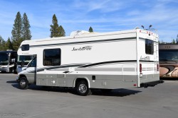 2006 Fleetwood Jamboree 26Q Class C. This coach is built on a Ford chassis and powered by a Ford Triton 6.8L V10 Engine with only 71,748 miles! Equipment includes: Spare Tire, Rear Air Bags, Pass Through Storage, Exterior Entertainment Center, Ducted Roof A/C, Rear View Camera, Power Windows, Powr Locks, CD Player, Refrigerator, Oven, Microwave. Equipped with a Onan 4.0KW gas Generator with 520 hours. The Floorplan features: Fabric Swivel Chair, Booth Dinette, Private Bath, Queen Bed, Cab Over Sleeper. Asking only $24,900! Item #8523 DeMartini RV Sales