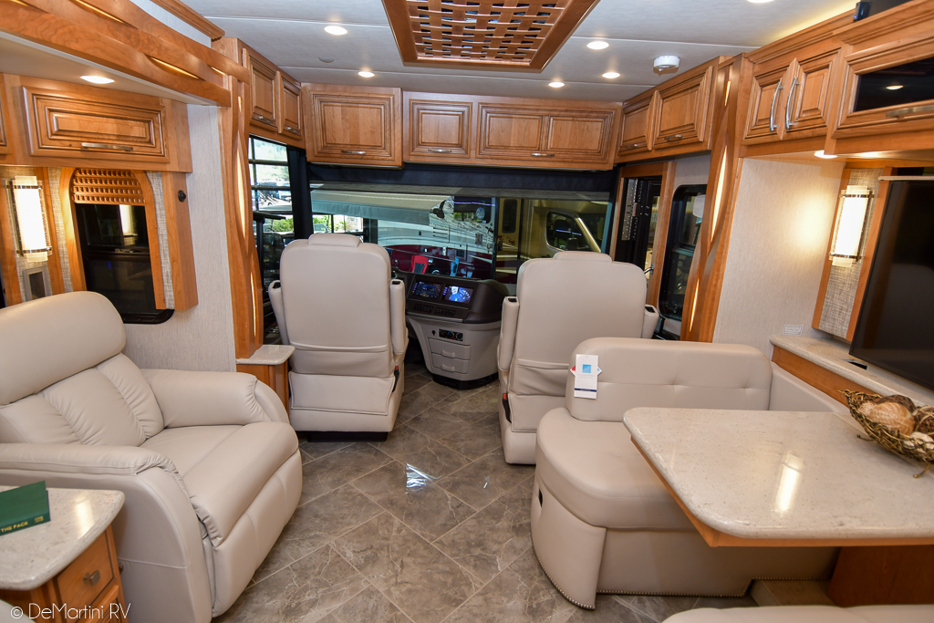 2020 Newmar New Aire 3343 Full Wall Slide-Out Class A Luxury Diesel Pusher Motorhome. The 2020 New Aire represents the next level of luxury travel. Its generous exterior storage compartments are finished with protective cargo liners and power storage trays are available on select floor plans. For added convenience, you’ll find a keyless entrance door with a touchpad and a doorbell. Girard® side awnings offer relaxing shade, and the optional outdoor entertainment center is perfect for hosting company. A 8.0-kW Cummins® Onan generator, retractable Samsung TV with a Blu-ray player and Bose® sound bar and much more! The MSRP is $424K but our price is slashed too low to advertise. Contact us for our LOWEST Price! Item #8823 DeMartini RV Sales