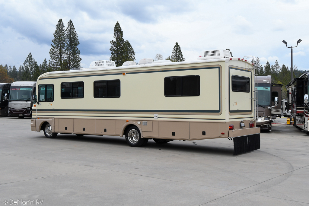 1995 Fleetwood Bounder 34J Class A Gas Motorhome. This Coach is built on a Chevrolet Chassis and powered by a Chevy 454 V8 Engine with only 45,960 Miles! Equipment includes: Spare Tire, Pass Through Storage, Hydraulic Leveling Jacks, Patio Awning, Two Roof A/Cs, CD Player, Blu-Ray Player, LCD TV in Bedroom, LCD TV in Cockpit, Refrigerator, Oven, Microwave. Equipped with a Onan 7.0KW Gas Generator with only 235 Hours. The Floorplan features: Swivel Chair, Fabric Sleeper Sofa, Booth Dinette, Private Bath, Queen Bed. Asking only $17,900! Item #9962 DeMartini RV Sales