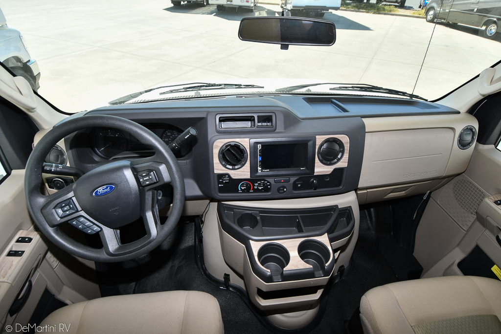 Standard Equipment: Equalizer Stabilizer Jacks • Roof Ladder • Touchscreen Dash Radio, Google Android Auto, Apple Car Play • SiriusXM Tuner and Antenna • Steering Wheel Audio and Camera Control • Deluxe Exterior Mirrors • Stainless Steel Wheel Liners • Wall Cubby with Net and USB Charging Port • Leatherette Dream Dinette Booth • Wireless Phone Charger with USB Plug • Single Child Safety Tether • Window Privacy Shades • Double Door Refrigerator • Flip-Up Countertop Extension • Kitchen Countertop LED Accent Lighting • Queen-Sized Bed • 12V Outlet in Bedroom for CPAP Machine • Shower Miser Hot Water Recycling System • 40" TV on Manual Swivel in Cabover • HDMI Video Distribution Box • 4.0 Micro Quiet Onan Generator • Winegard ConnecT WiFi/4G/TV Antenna • Solar Prep (Includes Solar Controller) • 6 Gallon Gas/Electric Water Heater • Black Tank Flush System.