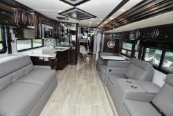Equipment Includes: Maple Hardwood Cabinetry • Electric Heat Below Tile • All Electric Coach with 2800 Watt Pure Sine Wave Inverter • Induction Cooktop • Central Vacuum System • Dishwasher Drawer • Dometic 3.77 Freezer on Slide Tray • Omniview 360 Camera System • WiFi Ranger Router • Xite Radio with Rand McNally Navigation • Splendid Stacked Washer/Dryer • 43" Exterior TV in Sidewall • 43" LED TV Front Overhead • Euro Dinette with Leaves/Chairs • Heated Captain's Seats • King Size Sleep Number Bed with Premier Air Mattress • Theater Seats • Recessed Docking Lights • Transfer Switch with Surge Protector • Power MCD Shades • Safe in Bedroom • Hot Water Line to Generator • Onan 8KW with 175 Hours Diesel Generator • RV Sani Con System • Pass Through Storage Tray • Stainless Steel Trim Kit • Girard Package with Nova Awnings • Kitchen Window and More!