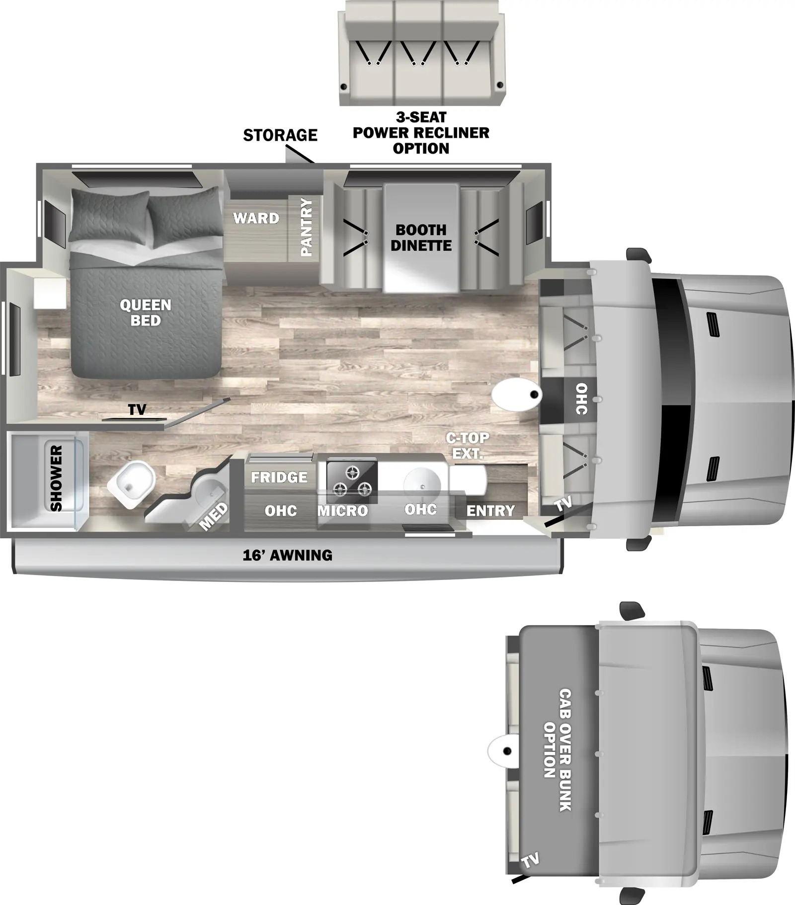 Optional Equipment Installed: Cab-Over Bunk • 74" Theater Seats ipo Dinette.