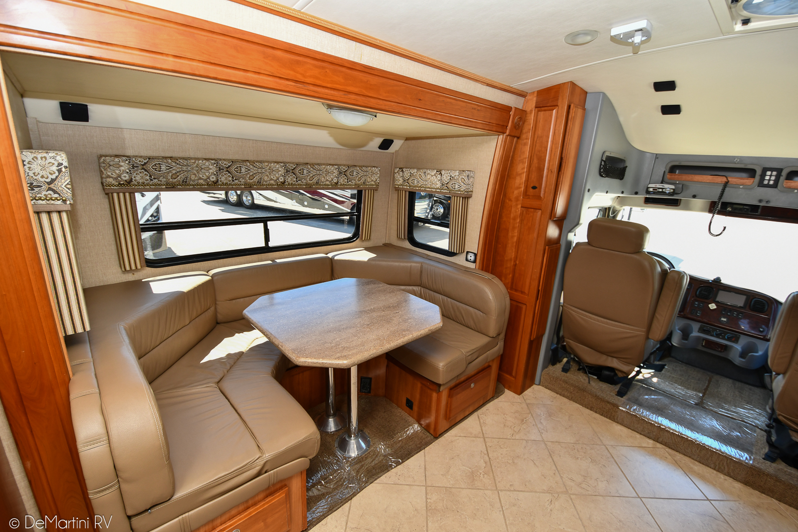 Equipment Includes: Aluminum Wheels • Side-Hinged Baggage Doors • Hydraulic Leveling Jacks • Window Awning • Patio Awning • Dual Ducted Roof A/Cs • 3000 Watt Inverter • Exhaust Brake • CB Radio • Rear View Camera • Leather Cockpit Air Ride Seats • LCD TV in Bedroom • LCD TV in Living Area • Refrigerator • Convection Microwave • Solid Surface Countertops.