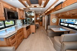 The 2024 Dutch Star Class A motorcoach offers ten floor plans, ranging from 38 to 43 feet in length. Two floor plans have been lengthened from last year, from 37 to 38 feet in length, to allow for more kitchen or bedroom space, depending on the floor plan.