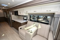 This coach is powered by a Freightliner® S2RV chassis with a 360HP diesel engine, delivering the strength and reliability you need for any adventure. At 34 feet in length, it offers a spacious and intelligently designed floor plan, ensuring comfort on the road and at your destination.