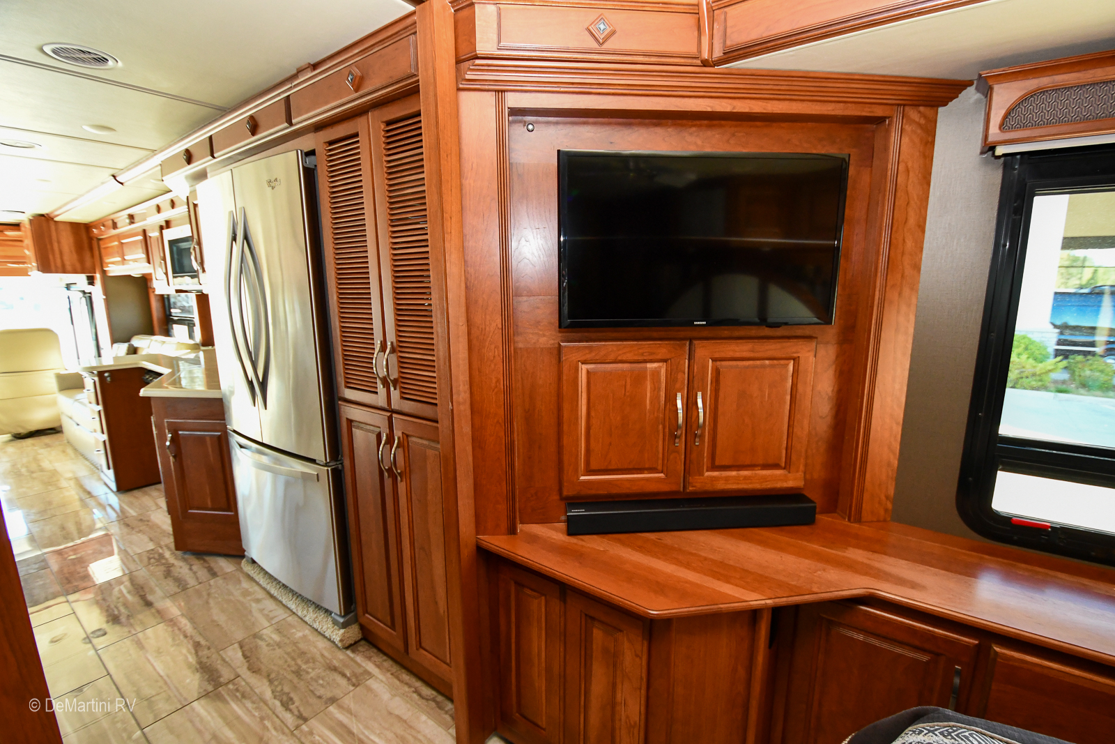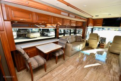 Equipment Includes: Power Cord Reel • Aluminum Wheels • Side-Hinged Baggage Doors • Pass Through Slide-Out Storage Tray • Pass Through Storage • Hydraulic Leveling Jacks • 2.8kW Pure Sine Wave Inverter • 3M Film Front Mask • Solar Panel • Exterior Entertainment Center with TV • Auto Front Door Awning • Auto Patio Awning • Dual Ducted Roof A/Cs with Heat Pumps • Exhaust Brake • 3-Camera Rear Vision System • Power Leather Cockpit Seats • GPS Navigation System • Trip Computer • Power Sun Visors • Water Purifier • Stacked Washer/Dryer • Blu-Ray Player • LCD TV in Bedroom • LCD TV in Living Area • LCD TV in Cockpit • Residential Refrigerator • Fireplace • Convection Microwave • Ceiling Fan in Bedroom • Solid Surface Countertops • Multiplex Wiring System.
