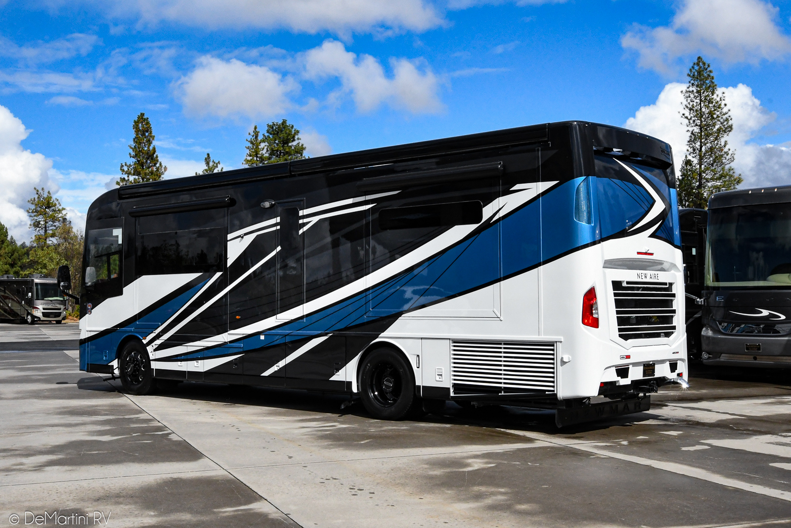 2026 Newmar New Aire 3543 Full Wall/3 Slide-Out Luxury Class A Diesel Motorhome. The 2026 New Aire offers a perfect blend of sophisticated design and advanced technology, providing a luxurious travel experience in a more compact size. The 2026 New Aire redefines compact luxury travel with its exquisite design and state-of-the-art features. Perfect for discerning travelers who value both elegance and practicality. The New Aire is Newmar's most accessible entry into Class A luxury travel. At just 35 feet long, this compact diesel pusher offers responsive 450 horsepower performance with Comfort Drive™ adaptive steering, delivering quiet confidence on the road and full comfort at every destination—even places larger coaches simply can't access. Experience premium living with high-end finishes including standard Italian leather upholstery and heated tile floors. Travel in premium comfort with heated six-way power-adjustable driver and passenger seats. The MSRP is over $707K but OUR PRICE is slashed too low to advertise! Contact us for our LOWEST PRICE! Item #D3140 DeMartini RV Sales