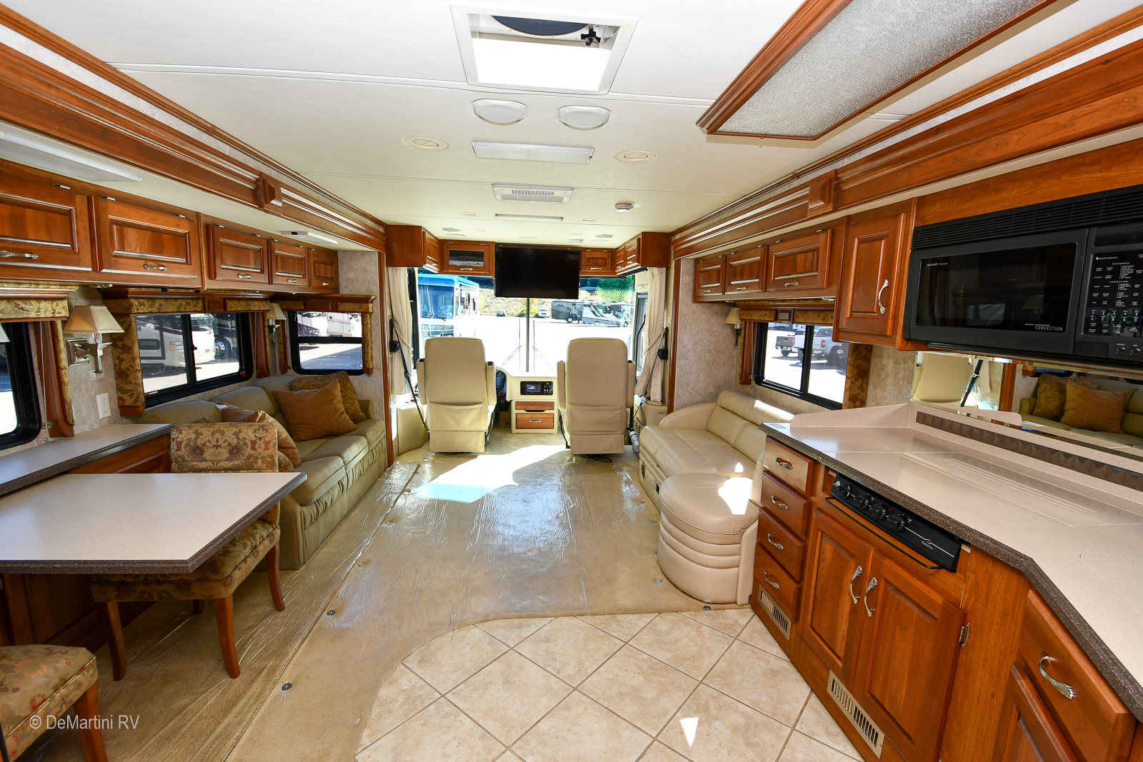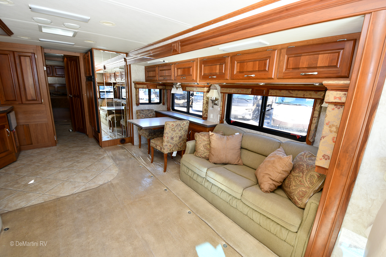 2005 Holiday Rambler Endeavor 40PRQ Quad Slide-Out Class A Diesel Motorhome. This Coach is Built on a Roadmaster Chassis and Powered by a Cummins ISL 400HP Diesel Engine with only 32,409 Miles! Equipment Includes: Power Cord Reel, Aluminum Wheels, Side-Hinged Baggage Doors, Pass Through Slide-Out Storage Tray, Pass Through Storage, Hydraulic Leveling Jacks, 2000 Watt Inverter, 3M Film Front Mask, Two Solar Panels, Exterior Entertainment Center, Full Encased Awnings, Road Side Window Awning, Front Door Awning, Auto Patio Awning, Dual Ducted Roof A/C's w/Heat Pumps, Energy Management System, Exhaust Brake, Adjustable Pedals, Rear View Camera, Power Leather Cockpit Seats, Co-Pilot Power Footrest, Power Sunvisors, and Water Purifier, Combination Washer/Dryer, DVD/VCR Player Combo, LCD TV in Bedroom, LCD TV in Cockpit, 4-Door Refrigerator w/Icemaker, Convection Microwave, Solid Surface Countertops. Equipped with a Onan 8.0KW diesel Generator with only 134 hours. The Floorplan Features: Quad Slide-Out, Leather J-Lounge, Fabric Hide-a-bed Sofa, Tile Floor in Kitchen/Bath, Dinette Table and Chairs, Private Toilet and Second Sink, Open Bath, Queen Bed. Asking only $64,900! Item #D3095 DeMartini RV Sales