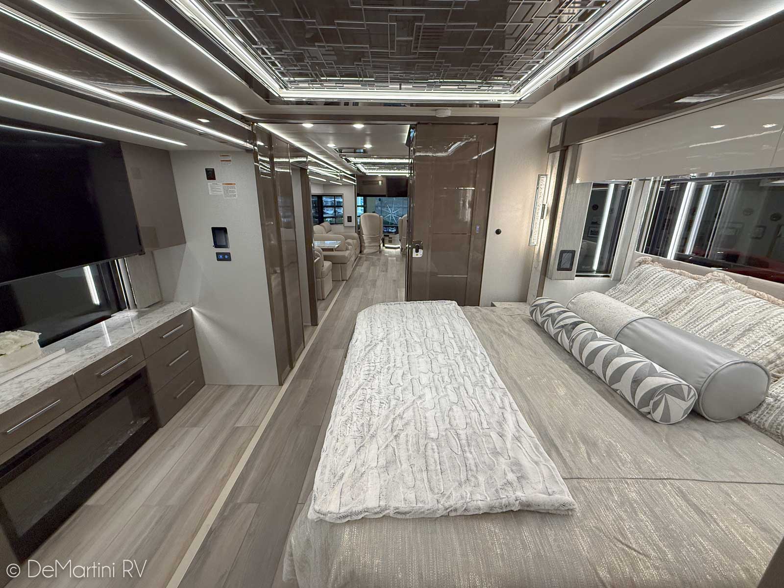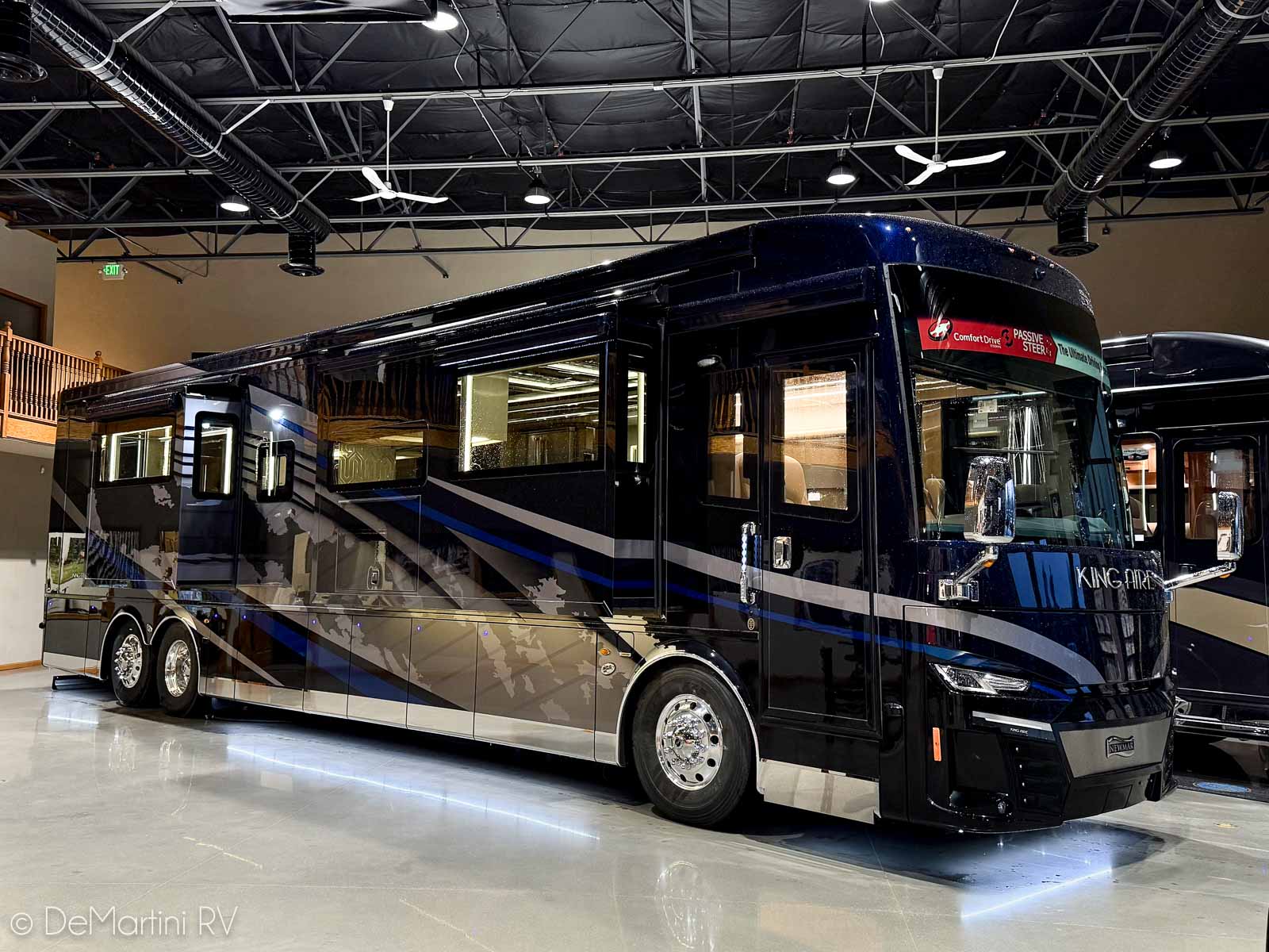 2025 Newmar King Aire 4596 Full Wall/3 Slide-Out Luxury Class A Diesel Pusher Motorhome. This King Aire is One of a Kind! SPECIAL EDITION PAINT! Featuring the gorgeous Premium Paint option in Midnight Pearl. Features include: · MIDNIGHT PEARL PREMIUM GRAPHICS · WINDSHIELD PROTECTION · SEDONA/SUMMIT MAPLE HARDWOOD CABINETRY · SPARTAN K3 CHASSIS · CUMMINS 6O5HP DIESEL ENGINE · SUB ZERO BEVERAGE CENTER · FIREPLACE IN BEDROOM · SECURITY SYSTEM · EURO BOOTH,2LEAVES,2 FLD CHRS · OVERHEAD CABINET - HEAD OF BED · Passenger Seat with Massage · THEATER SEATING · 4 SUNFREE SOLAR PANELS · KITCHEN WINDOW and more! Contact us for our LOWEST Price! Item #D3201 DeMartini RV Sales