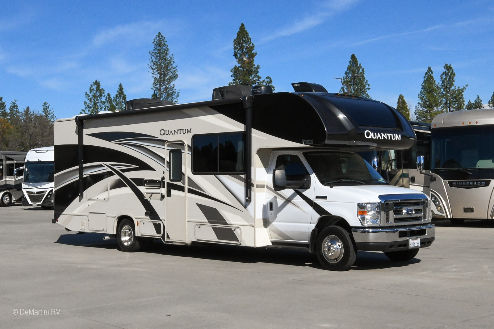 2020 Thor Quantum KW29 Double Slide-Out Class C. This Coach is Built on a Ford Chassis and Powered by a Ford Triton 6.8L V10 Engine with only 20,450 Miles! Equipment Includes: Pass Through Storage, Exterior Entertainment Center w/TV, Auto Patio Awning, Dual Ducted Roof A/C's, MaxxAir Vent, Stabilizer Jacks, On-Demand Water Heater, Rear View Camera, Leather Cockpit Seats, GPS Navigation System, and LCD TV in Bedroom, LCD TV in Living Area, Refrigerator, Oven, Convection Microwave, Solid Surface Countertop. The Floorplan Features: Double Slide-Out, Booth Dinette, Theater Seats, Private Bath, King Bed, Cab Over Sleeper. Asking only $72,900! Item #D3214 DeMartini RV Sales
