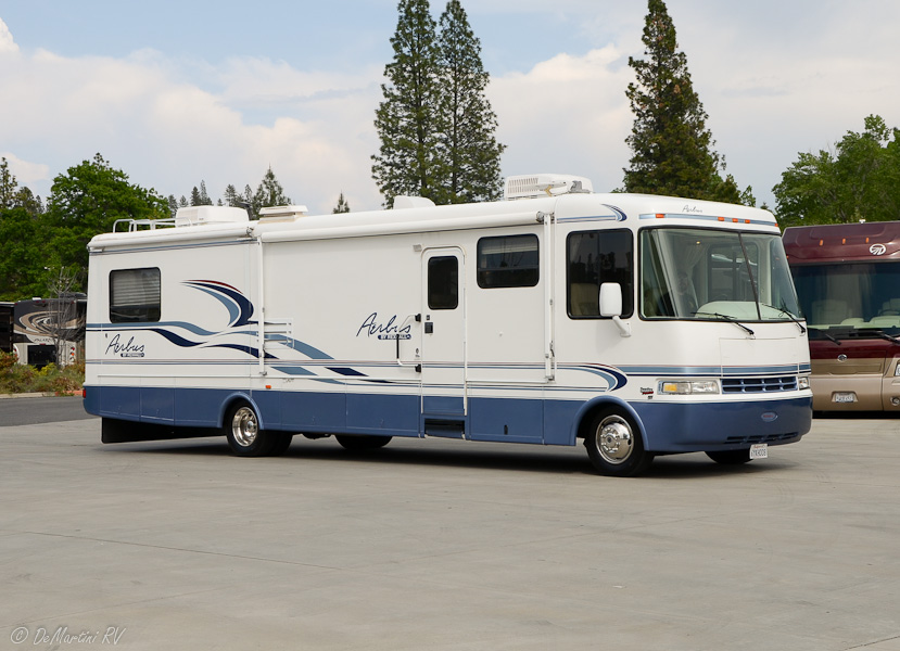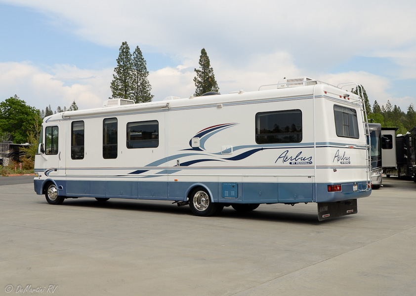 2001 Rexhall Airbus 3650 Double Slide-Out Class A - Gas Motorhome. This coach is built on a Ford chassis and powered by a Ford Triton 6.8L V10 Engine with only 37,431 miles! Equipment includes: Spare Tire, Hydraulic Leveling Jacks, 2.8KW Pure Sine Wave Inverter, Dual Ducted Roof A/C's, Encased Patio Awning, Rear View Camera, Driver's Door, Leather Cockpit Seats, Brake Controller, and Water Purifier, VCR, TV in Living Area, TV in Bedroom, Refrigerator w/Icemaker, Oven, Convection Microwave, Solid Surface Countertops. Equipped with a Generac 6.5KW gas Generator. The Floorplan features: Double Slide-Out, Leather Hide-a-bed Sofa, Two Fabric Recliners, Private Bath, Queen Bed. Asking only $35,900! Item #3059 DeMartini RV Sales